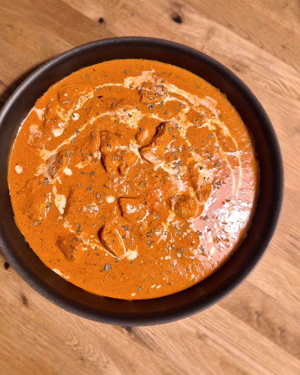 In Delhi wird dem Butter Chicken typisch kurz vor dem Servieren noch Kasuri Methi (getrocknete Bockshornkleeblätter) hinzugefügt, was der Sauce ein aromatisches Finish verleiht. Leider sind die Blätter bei uns schwer erhältlich. Achtung, Bockshornkleesamen sind nicht das gleiche.
