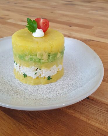 Die peruanische Causa Limeña de Pollo ist erfrischend und perfekt für warme Tage – ein echtes Highlight aus der lateinamerikanischen Küche.
