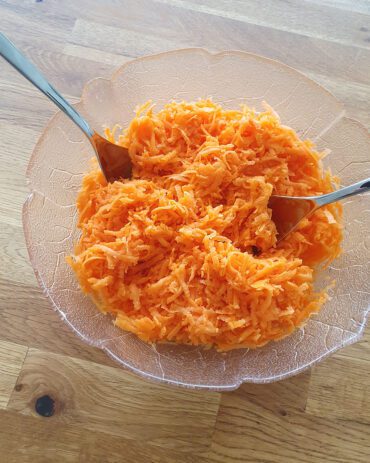 Karottensalat ist schnell gemacht und voller Vitamine. Mit Zitronensaft, Sonnenblumenöl und etwas Honig wird er besonders lecker.