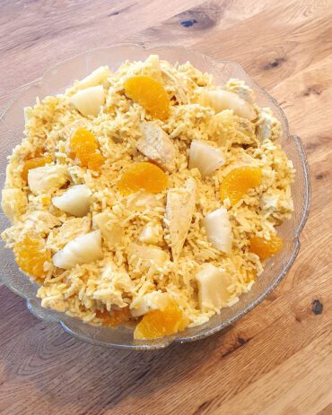Leichter Curry Reissalat mit Hähnchen, Ananas und Mandarinen