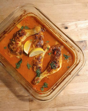 Kuku Paka ist ein typisches Curry Rezept aus Afrika mit Hähnchenschenkel und Kartoffeln an einer aromatischen Sauce aus Kokosmilch und Tomaten.