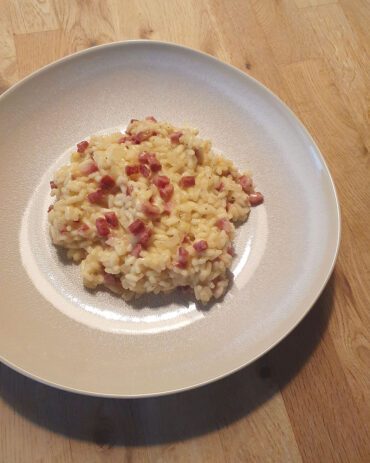 Das herzhafte Risotto Rezept mit Bier ist was ganz Besonderes. Der kross gebratene Speck ergänzt den Bier Risotto durch seine Würze perfekt.