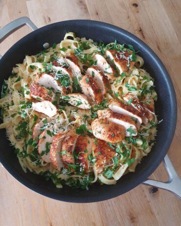 Chicken Alfredo ist ein super beliebtes Pastagericht aus Amerika, das mit cremiger Alfredo Sauce und saftiger Hähnchenbrust zubereitet wird.