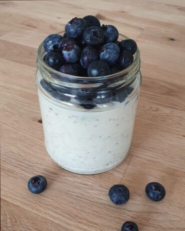 Overnight Oats ist ein leckeres gesundes Frühstück, das schnell und einfach vorbereitet ist. Vanille Joghurt und Chia Samen machen das Müsli super cremig.