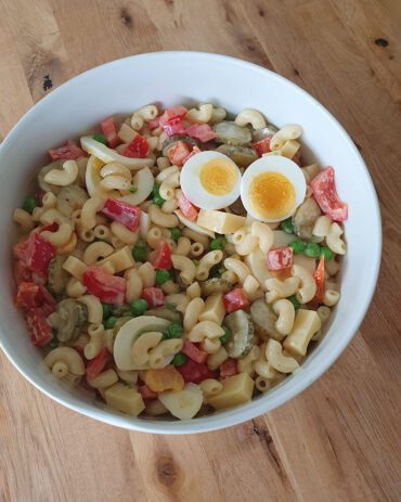 Der bunte Hörnli Nudelsalat mit selbstgemachter Salatsauce sorgt immer für Begeisterung, ob als Grillbeilage, auf einem Partybuffet oder einfach als Hauptspeise mit einem Stück Brot.