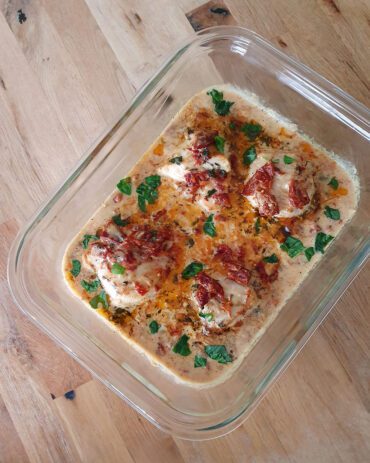 Marry me Chicken ist ein berühmtes Rezept mit Hähnchenbrust an mediterraner Sahnesauce mit Parmesan, getrockneten Tomaten, Knoblauch und Kräutern.