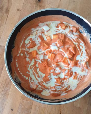 Paneer Makhani ist ein vegetarisches Rezept aus Indien. Der indische Paneer Käse wird in einer milden Tomaten-Cashew-Sahnesauce serviert.