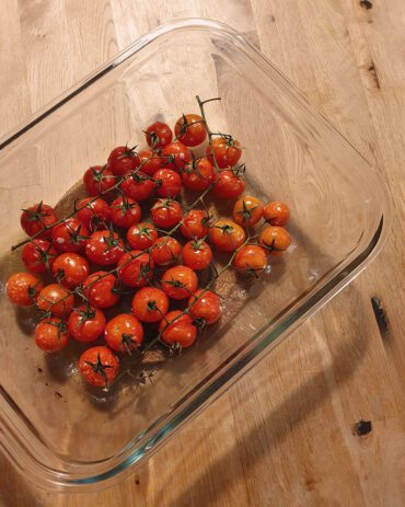 Cherry Tomaten werden im Ofen gebacken besonders aromatisch. Tomaten am Strauch sehen wunderschön aus und passen zu mediterranen Rezepten.