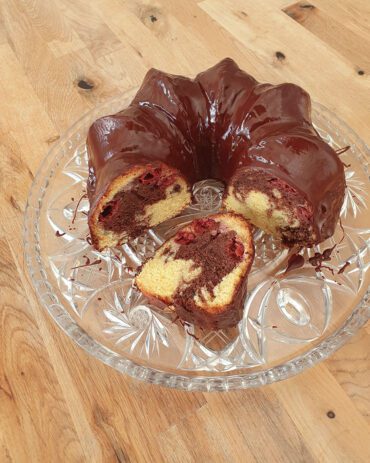 Der leckere Marmor Gugelhupf wird mit Kirschen extra saftig und erhält eine fruchtige Komponente, die einfach hervorragend zu Schokolade passt.