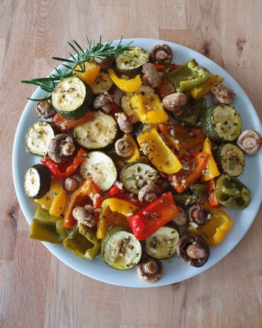 Antipasti Gemüse wird in Italien typisch als Vorspeise zusammen mit italienischem Brot serviert. Das Rezept für mediterran mariniertes Gemüse aus dem Ofen ist ganz einfach und lässt sich super gut vorbereiten.