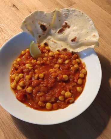Chana Masala ist ein indischer Eintopf mit Kichererbsen und pikanter Tomatensauce. Das vegane Curry ist super schnell und einfach zubereitet.
