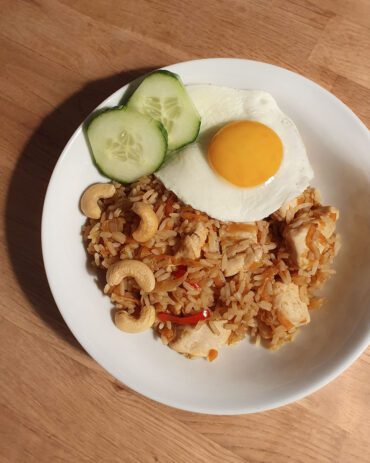 Das indonesische Wokgericht mit gebratenem Reis heisst Nasi Goreng. Traditionell braten die Indonesier den Reis vom Vortag mit weiteren beliebigen Zutaten direkt zum Frühstück.
