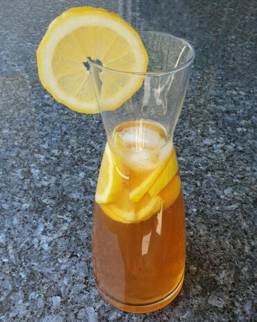 Der selbstgemachte Zitronen Eistee aus Schwarztee und frischer Zitrone wird nur mit Honig gesüsst und ist somit besonders lecker und gesund.