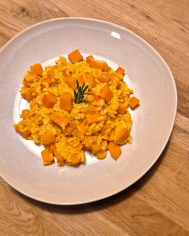 Dieser Kürbis Risotto mit Hokkaido-Kürbis und Rosmarin ist purer Herbstgenuss, einfach zuzubereiten und perfekt für gemütliche Abende.