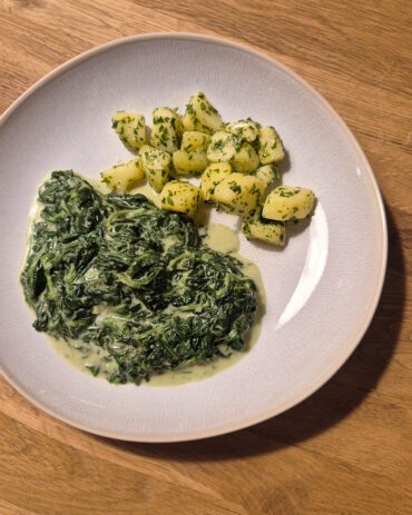 Selbstgemachter Rahmspinat schmeckt besser und man weiss auch genau, was drin ist. Serviert mit Kartoffeln, Fischstäbchen oder Spiegelei ist er der echte Klassiker.