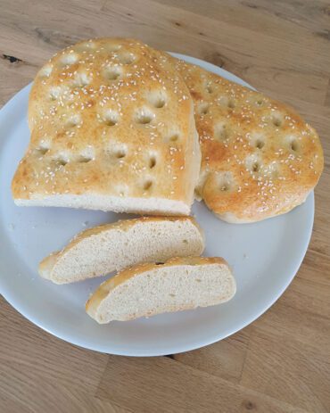 Weiches, fluffiges türkisches Fladenbrot mit Sesam