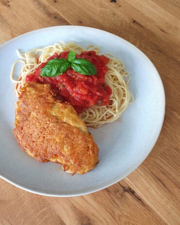 Saftige Piccata Milanese mit Tomatenspaghetti