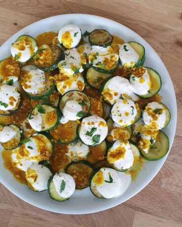 Die orientalische Zucchini Platte mit Joghurt ist ein super leckeres und leichtes Sommer Rezept, das als Mezze oder vegetarische Hauptspeise mit Brot serviert werden kann.