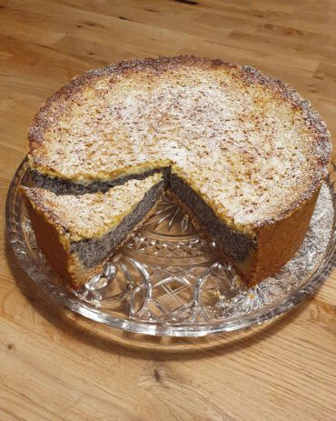 Dieser Mohn Pudding Kuchen besteht aus einem Mürbeteig, gefolgt von einem Mohn Pudding und on Top eine Eierschecke. Der Kuchen ist super saftig und durch die Mohnsamen zugleich crunchy.