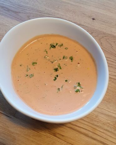 Diese selbstgemachte Burger Sauce mit Zwiebeln, Essiggurken und Petersilie macht jeden Hamburger vollkommen.