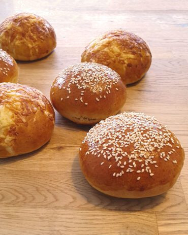 Mit selbstgebackenen Burger Buns schmeckt ein Hamburger einfach am besten. Die fluffigen Brötchen lassen sich außerdem wunderbar auf Vorrat backen und einfrieren.