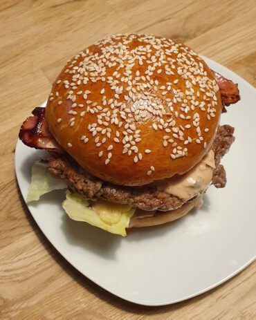 Dieser Cheeseburger mit selbstgebackenem Burgerbrötchen, hausgemachter Hamburgersauce und handgeformtem Hackfleischpatty ist was für Feinschmecker!