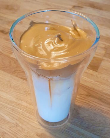 Dalgona Eiskaffee ist eine Kaffeespezialität aus Macau mit leckerem Kaffeeschaum und ein echter Blickfang.