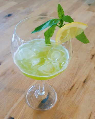 Gin Basil Smash ist ein süss-saurer Cocktail auf Gin Basis mit viel Basilikum, frischem Zitronensaft und Zuckersirup.