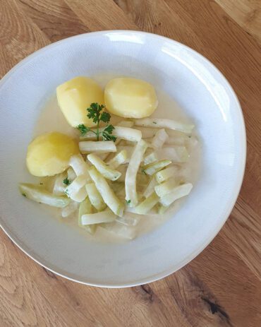 Das Kohlrabi Gemüse in der herrlich cremigen weissen Sauce Béchamel weckt Kindheitserinnerungen.