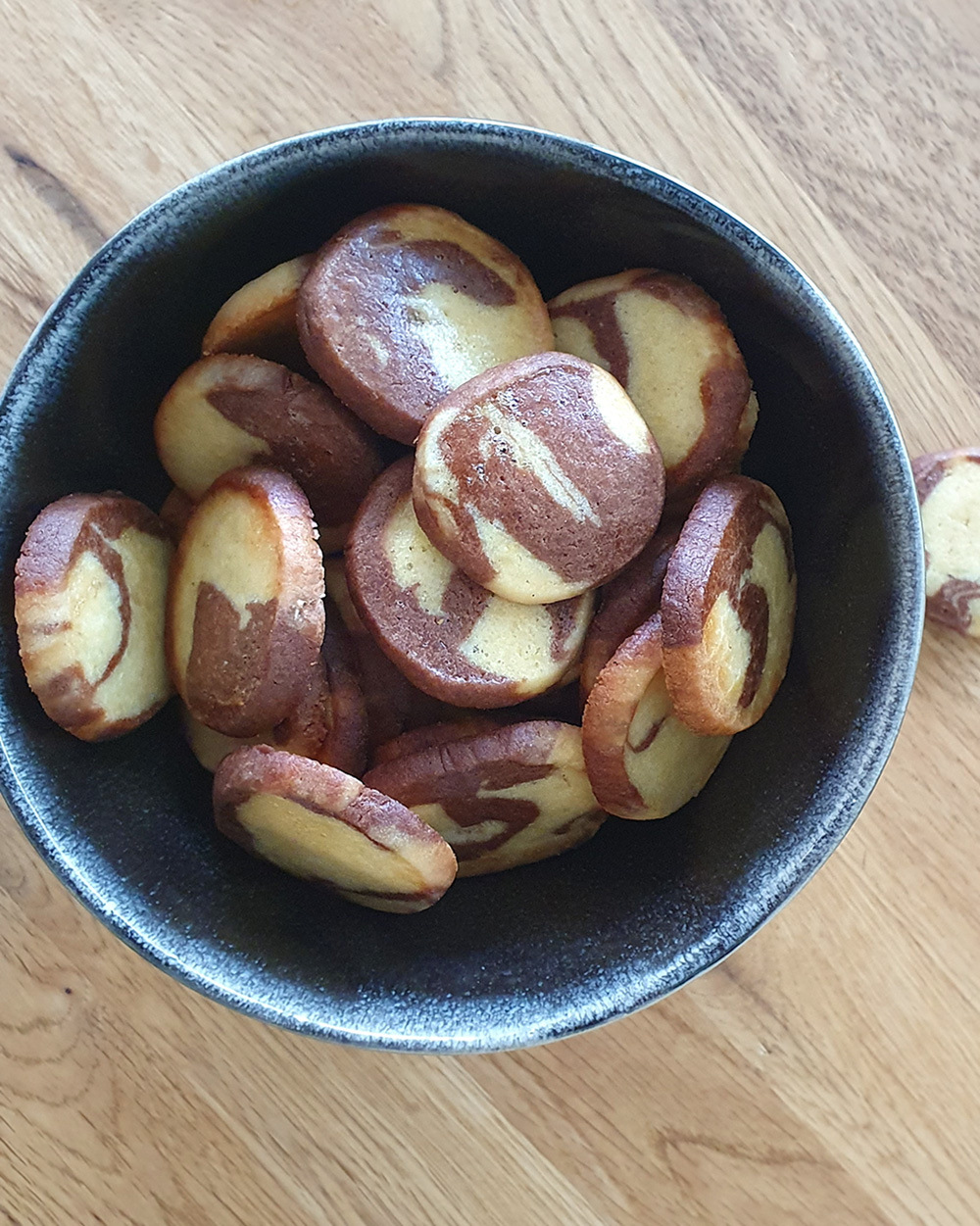 - Das Schwarzweissgebäck ca 12 min bei 180° Ober/Unterhitze backen.