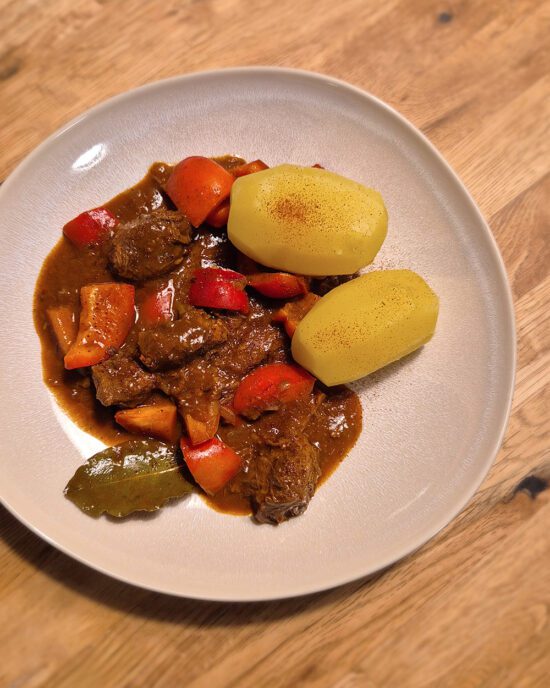 Pörkölt ist ein traditionelles Schmorgericht mit Paprika aus Ungarn, welches bei uns als ungarisches Gulasch bekannt ist.